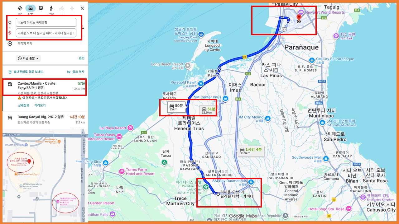 필리핀 국제공항에서 1시간(야간), 1시간 30분(주간) 소요, 학교와 호텔은 도보 2분 거리이며, 안전하고, 쾌적한 환경을 갖추고 있는 카비테 입니다.